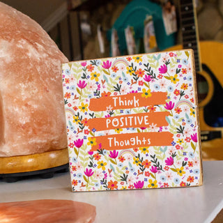 Meet THE inspirational accent you've been searching for - and display it YOUR way! This is your perfect reminder to think positive thoughts, especially when the blessing in our trial is difficult to see! The vibrant hand illustrated design adds an adorable pop of color to home offices, dorm rooms - and even your bedside table! Pick a place in your home, car - even RV - where you'll see this message often...or gift it to someone who needs to hear it!