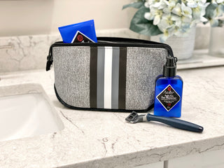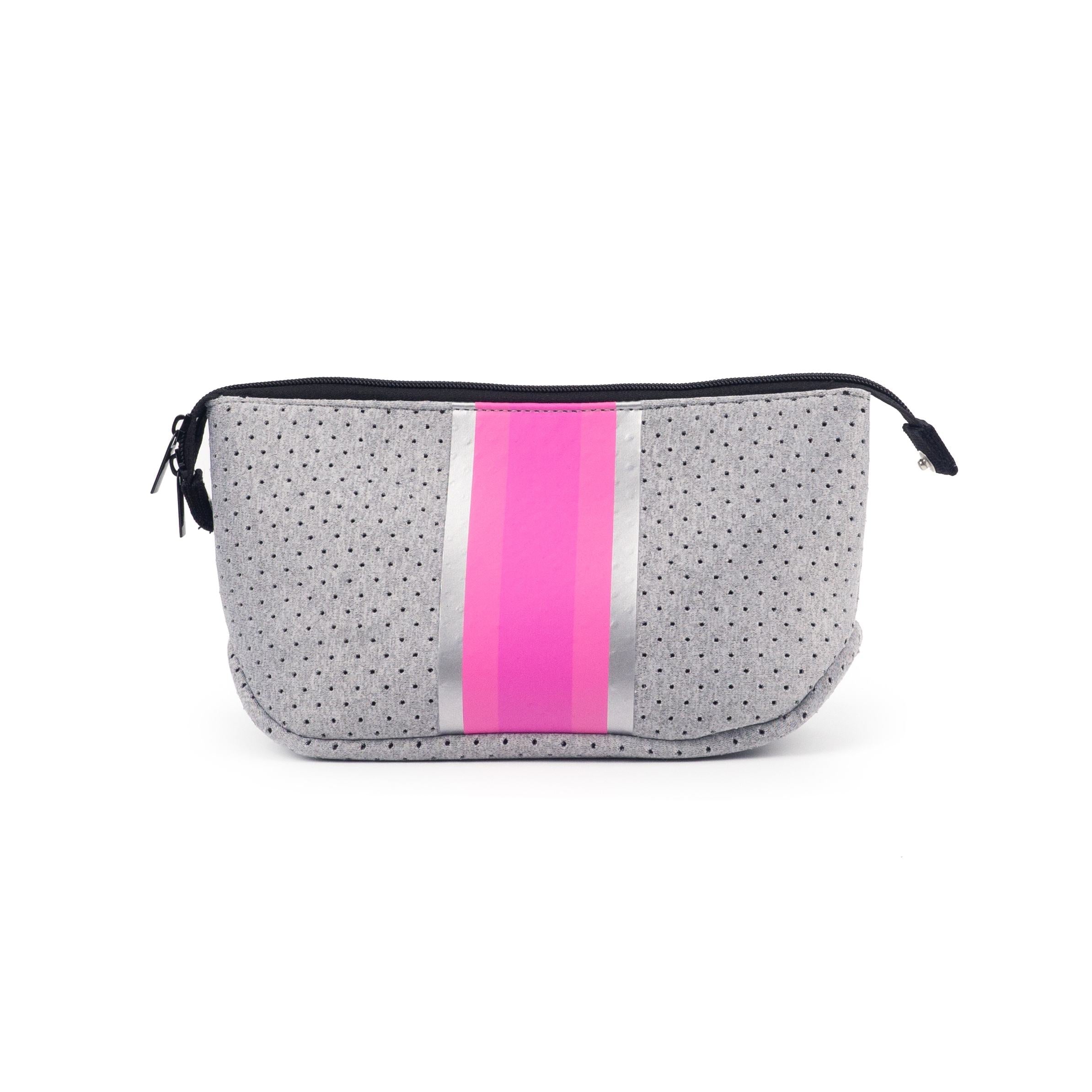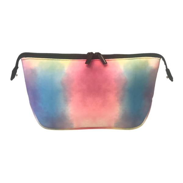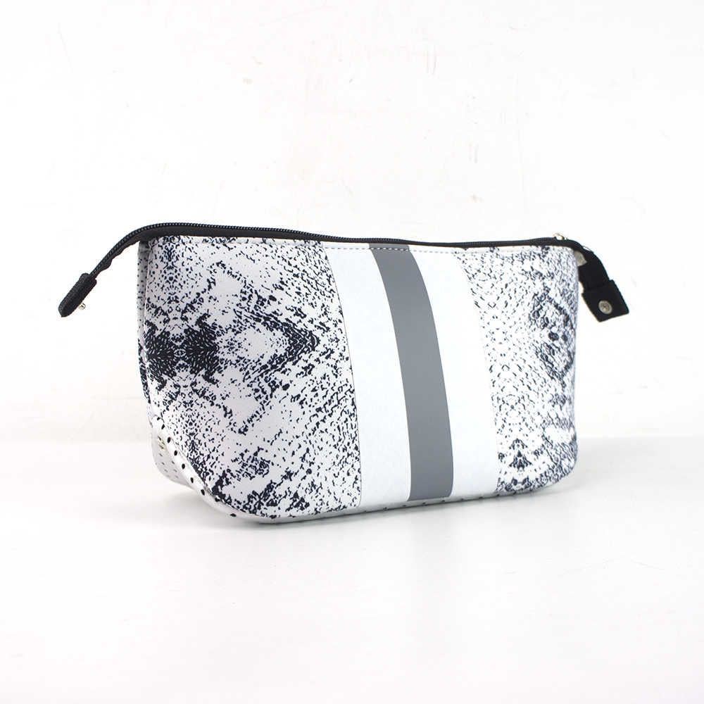 This Neoprene fashion bag is so eye catching with its fun designs and trendy stripe. It is the best neoprene bag for all your travels or everyday organization. With its zipper closure you can safely store everything from cosmetics to electronics. The adjustable sides snap to customize for you. It is a great to give as a gift or keep for yourself!