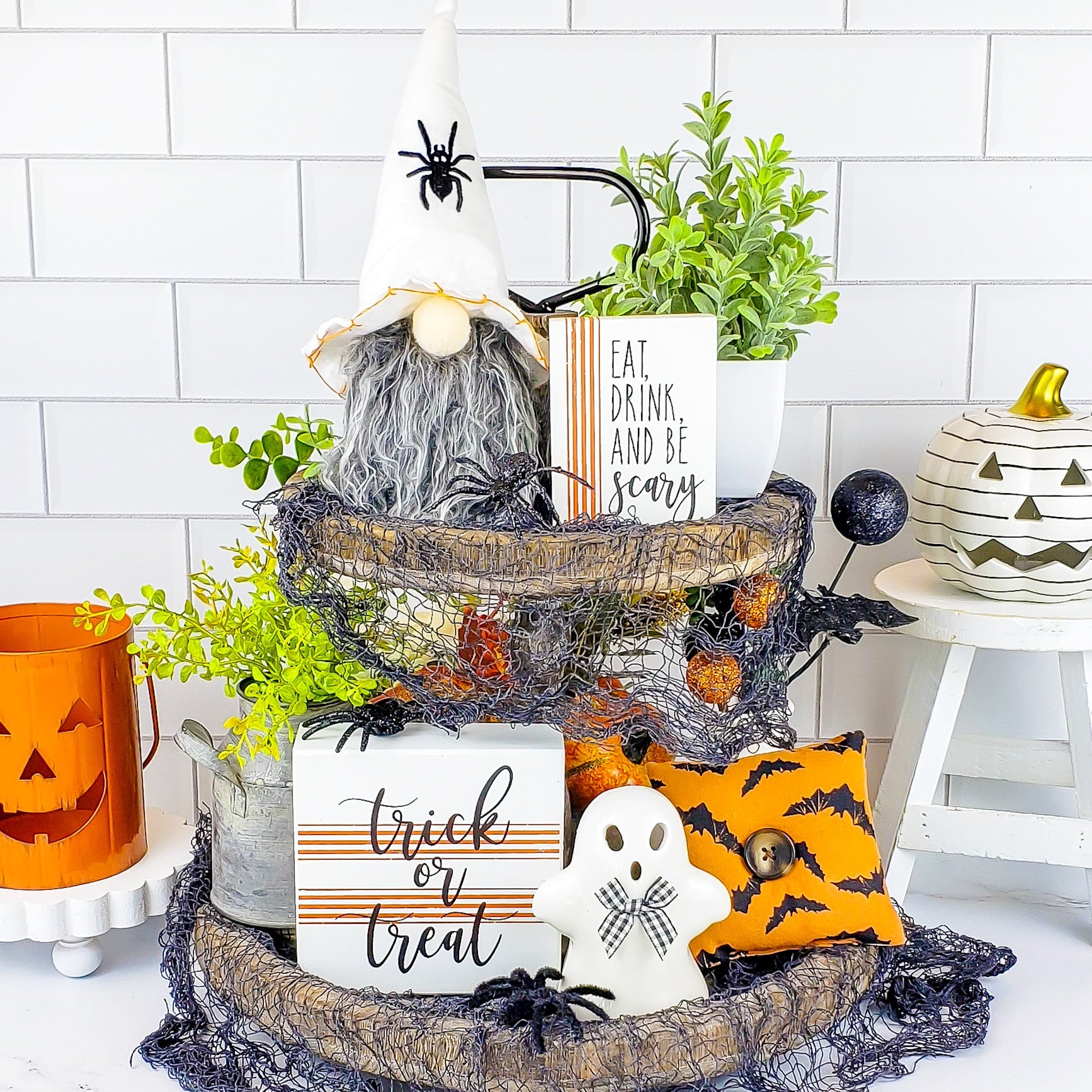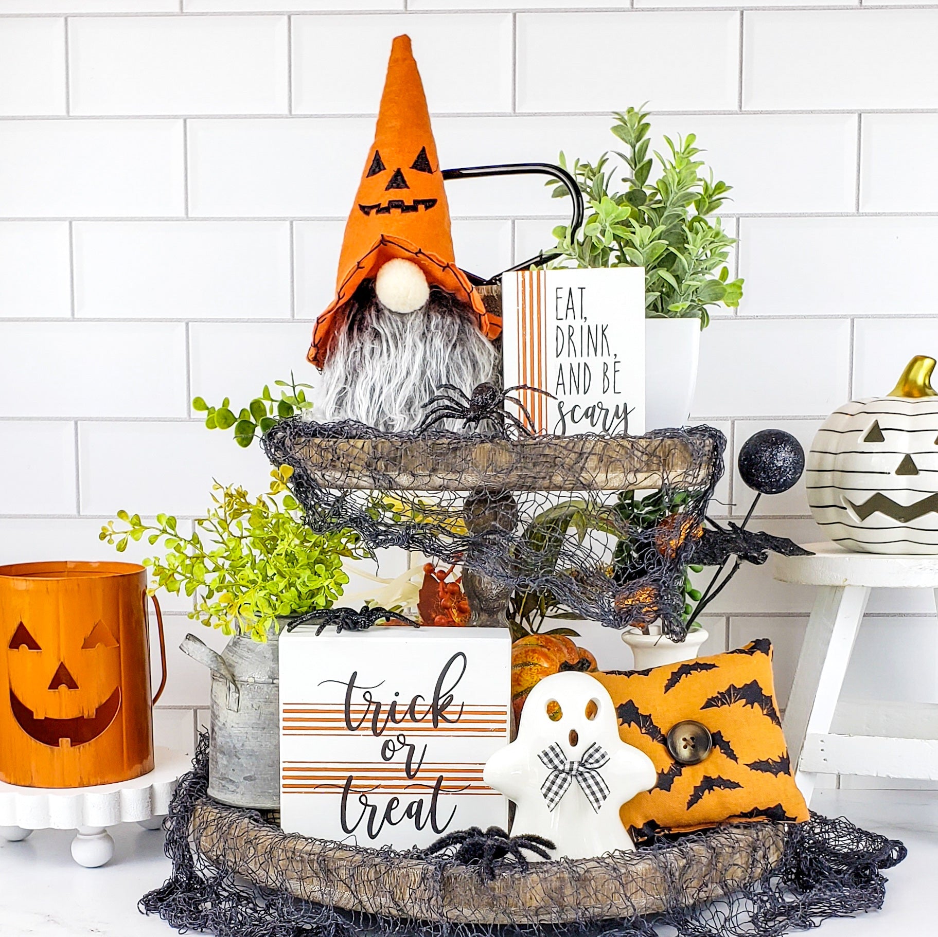 NOTE: The tiered tray and other items shown are for display purposes only and are NOT included in the Halloween set. Everything included is listed below. Sizes are approximate. Colors variations and styles may vary.