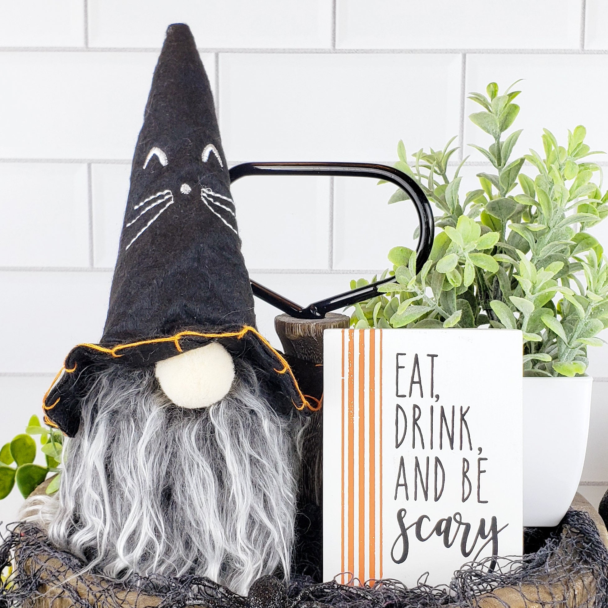 - Orange, Black or White Halloween Gnome 10 x 3.3 (Hat 5”D)