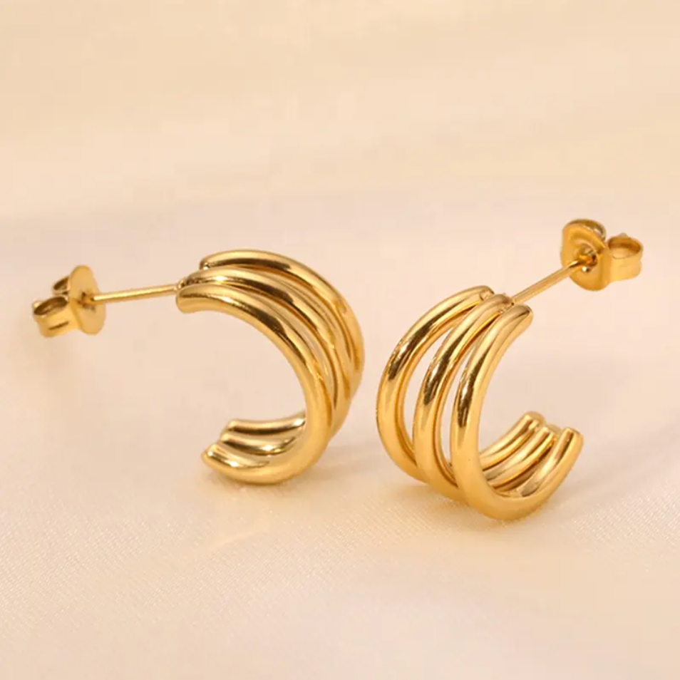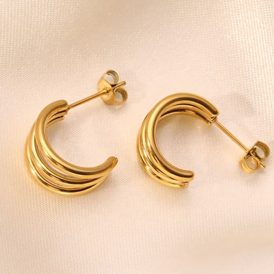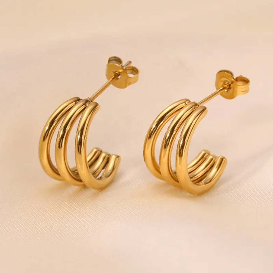 Perfect Gift: Searching for a thoughtful and stylish gift? Look no further! Surprise a loved one or treat yourself to the beauty of simplicity with these Triple Hoop Stud Earrings.
