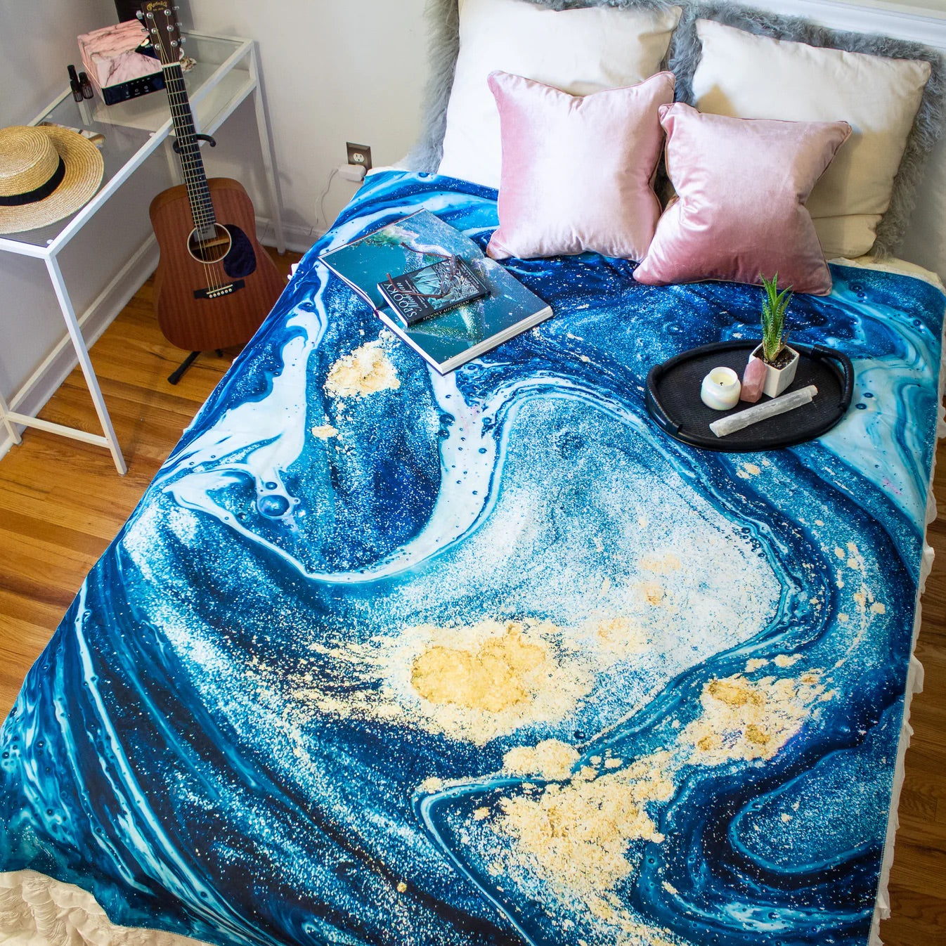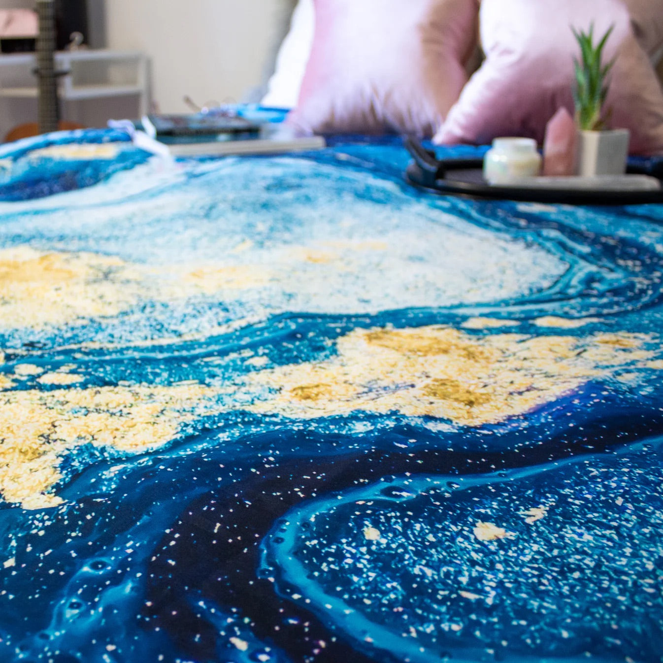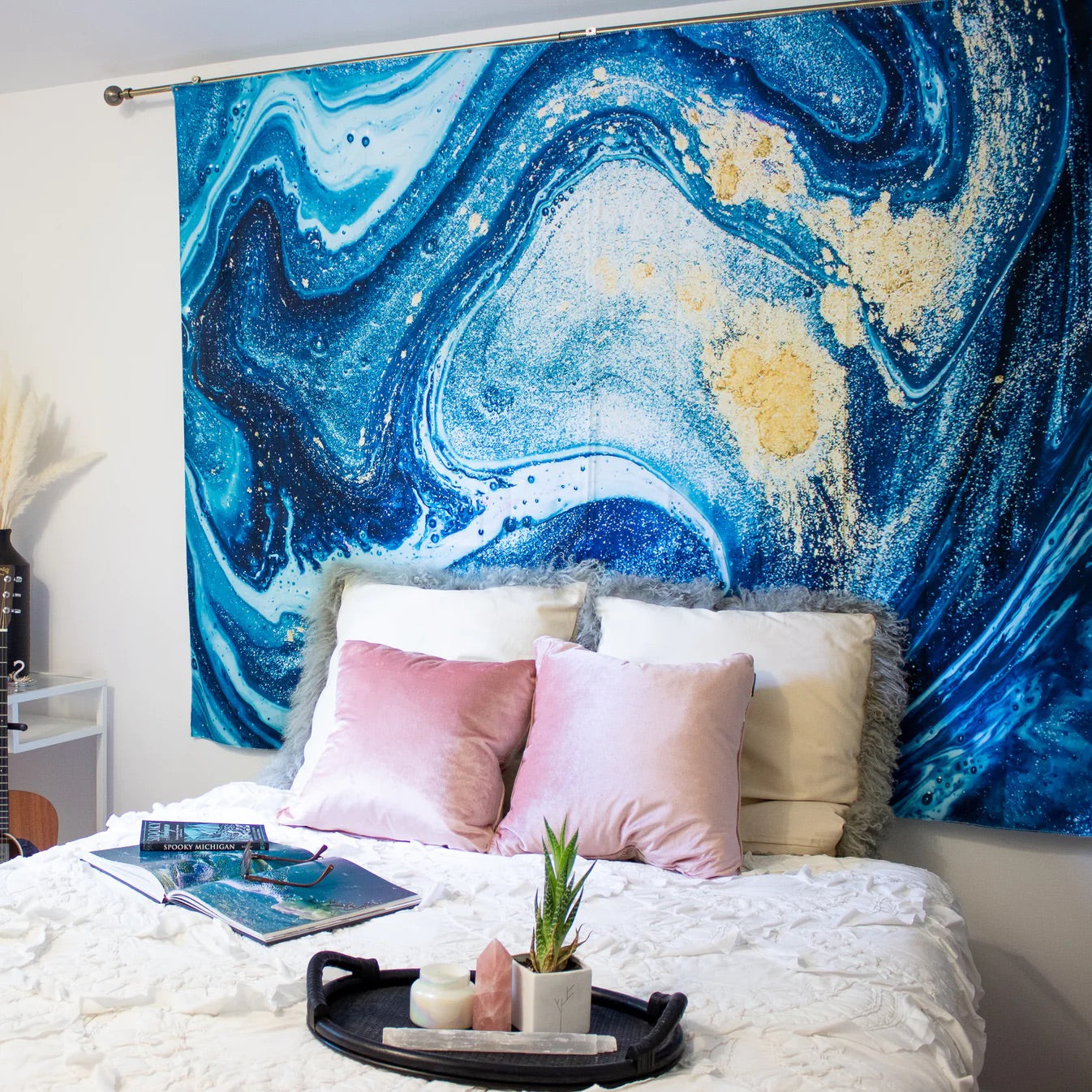 Feel the desert heat with a combination of rock and crystal! This striking geode tapestry resembles its real counterpart, complete with shimmer accents and volcanic bubbles.