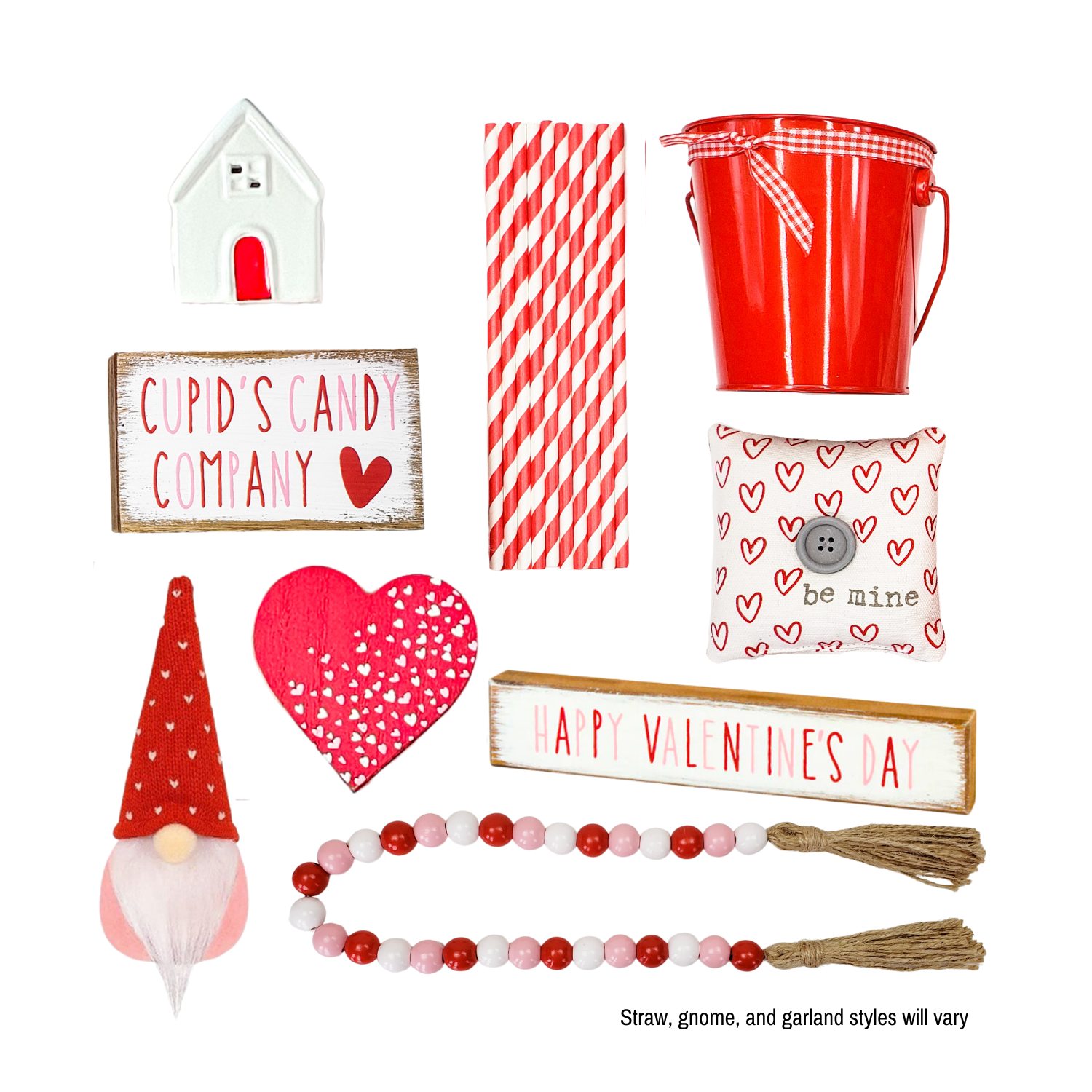 - 10 red/white or pink/white paper straws - Styles will vary