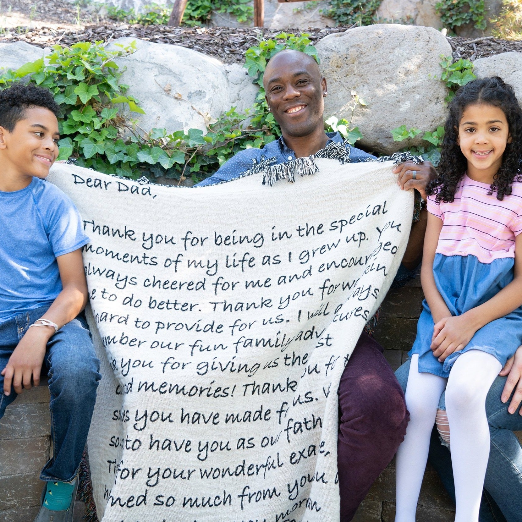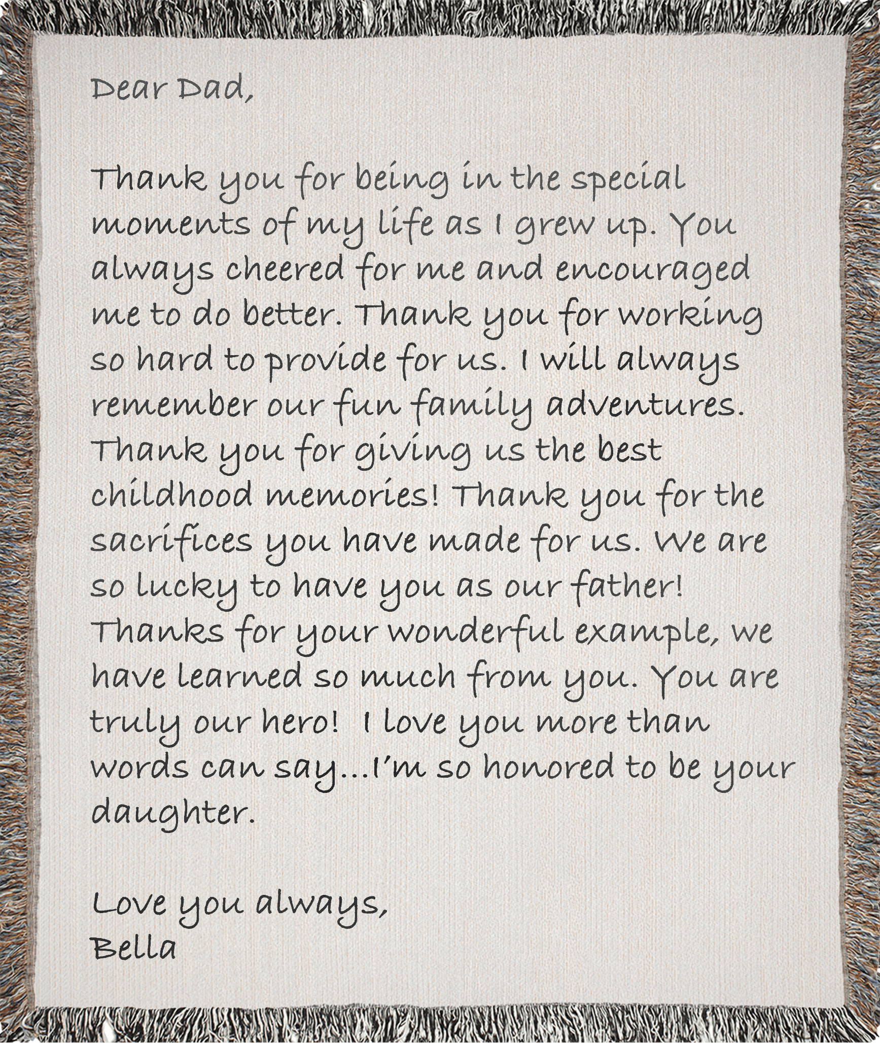 Type your handwritten message here and we will weave your words into a beautiful throw blanket your loved ones will treasure forever. Fill out the three sections: