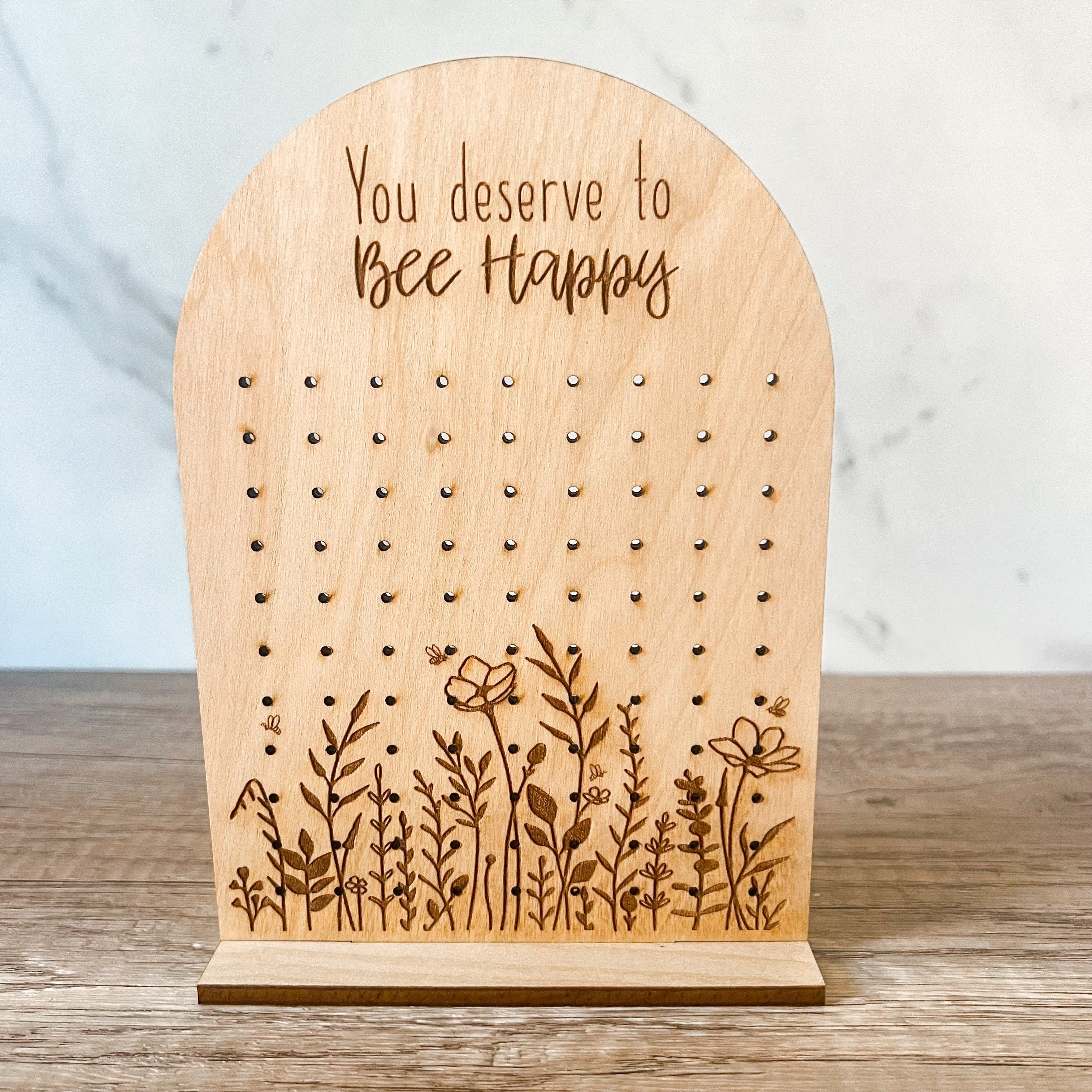 This Bee-utiful Wooden Earring Holder & Stand is perfect for displaying your favorite earrings while reminding you that “You Deserve to Bee Happy.”